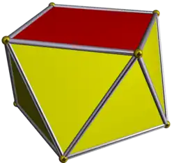 | pyramide tétragonale | 90° (×8) | 0° (×1), 75,7° (×4), 119,8° (×4) |