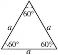 En géométrie euclidienne traditionnelle, tous les triangles équilatéraux sont semblables entre eux et réguliers : leurs trois angles valent 60 degrés.