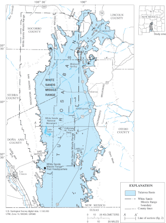 Le Polygone d'essais de missile de White Sands est une base de lancement de l'armée américaine s’étendant sur près de 8 300 km2, sur des portions de cinq comtés différents du sud du Nouveau-Mexique. C’est la plus grande zone militaire des États-Unis. Elle recouvre le site de la première explosion atomique, de nom de code « Trinity ». Le complexe McGregor Range de Fort Bliss, de 240 000 ha, au sud (sud-est du Bassin de Tularosa, à Otero Mesa[2]) est l'autre grand centre d'essais militaires de la région.