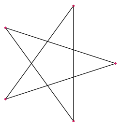 Un exemple de polygone régulier étoilé (ce qui équivaut à « régulier croisé », ou à « régulier non convexe ») est le pentagramme, qui a les mêmes sommets que le pentagone régulier convexe, mais qui est connecté par des sommets alternés.