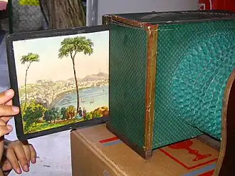Les polyoramas et leurs vues transparentes étaient vendus à la sortie des spectacles des dioramas dont ils constituaient le prolongement miniaturisé du procédé.