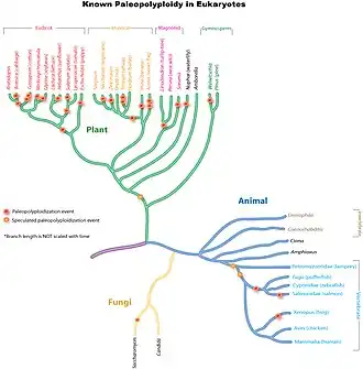 La récurrence des évènements de polyploïdie (selon leur ancienneté, on distingue les paléopolyploïdes, les mésopolyploïdes et les néopolyploïdes) explique que la polyploïdisation est un facteur de diversification[8] chez les animaux et les plantes[9].