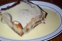 La Žemlovka est un gâteau tchèque de pomme, pain grillé et lait[111]. La charlotte aux pommes de Pâques russe Yablotchnaia Babka est une version fondante de ce mélange: tranches de pain de mie dorées au beurre, pommes sautées, crème anglaise gélifiée à la vanille[112].