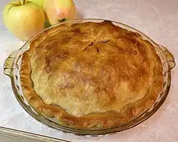 En Amérique du nord, grosse productrice de pomme, Apple crisp est à base de pommes en compote cuites au four, garnies avec une garniture friable de farine, beurre et sucre, de flocons d'avoine et de cassonade. Il est souvent considéré comme une variante du crumble[113]. Apple Brown Betty est une superposition de couches de pomme cuite et de la même garniture friable. Apple cobbler est couvert d'un mélange qui est le même que celui d'Apple crisp mais sans avoine. Le gâteau aux pommes juif, ou néerlandais ou un gâteau aux pommes allemand (Jewish apple cake) qui aurait été introduite en Pennsylvanie par les immigrés hollandais est une génoise aux pommes sans produits laitiers[114].