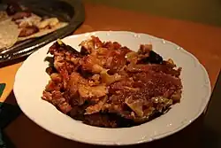 L'Apfelstrudel, strudel aux pommes: pâte à strudel feuilletée fourré de gros morceaux de pommes, de noix d'amande, et de raisins secs. Se sert chaud aromatisé de cannelle et de crème fraîche[70]. Il existe diverses pâtes à strudel, souvent on utilise de la pâte feuilletée, mais la véritable qui donne le ausgezogener Apfelstrudel, Apfelstrudel effiloché, est très finement feuilletée, comme la pâte phyllo (du grec ancien φύλλον / phýllon, feuille) des baklavas ottomanes d'où elle tient son origine[71]. Le baklava aux pommes se rencontre en Afrique du Nord[72].