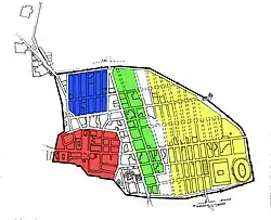 La ville se développe d'abord vers l'est puis dans les directions nord-ouest et sud-est jusqu'à atteindre près de 66 hectares[7], dont 44 d'habitations, le reste étant constitué de jardins et de champs se concentrant principalement au nord de la voie d'Abondance.