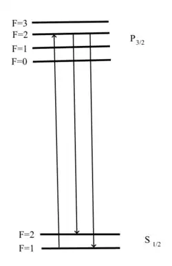 Les états atomiques se distinguent selon l'énergie emmagasinée par l'atome ; on les représente sur une échelle d'énergies, où les niveaux de faible énergie sont en bas de l'échelle, tandis que les niveaux de grande énergie sont en haut. L'état d'une vapeur atomique peut être représenté par la proportion ou le nombre d'atomes occupant chacun des niveaux de cette échelle (on dit encore la population de chaque niveau).