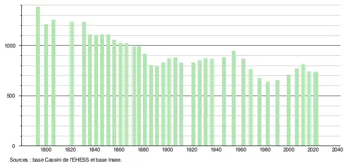 - ↑ Fiches Insee - Populations de référence de la commune pour les années 2006, 2007, 2008, 2009, 2010, 2011, 2012, 2013, 2014, 2015, 2016, 2017, 2018, 2019, 2020, 2021 et 2022.