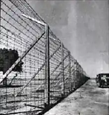 Double clôture de fil barbelé érigée autour des enclaves par les autorités indiennes (1954).
