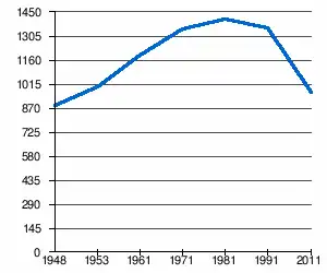 - 1 2 (sq) « Évolution de la population 1948-2011 », sur pop-stat.mashke.org (consulté le ).
