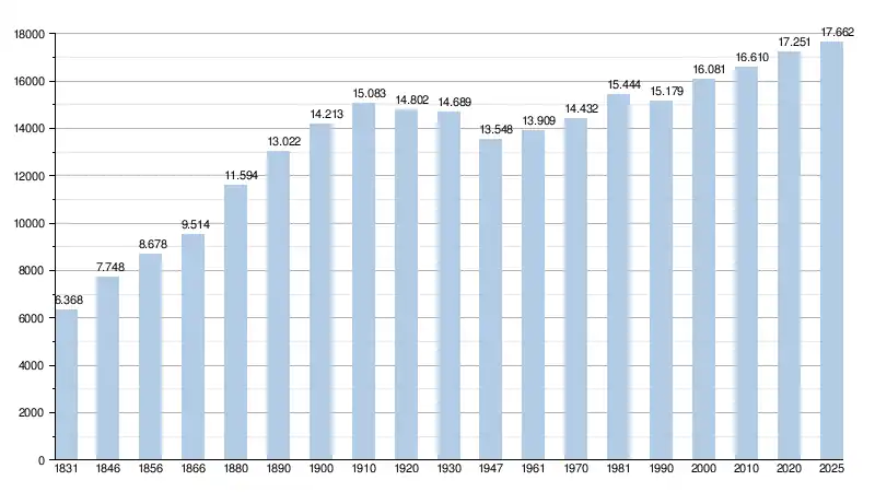 - Source: DGS , de 1831 à 1981=recensements population; à partir de 1990 = nombre d'habitants chaque 1 janvier[2]