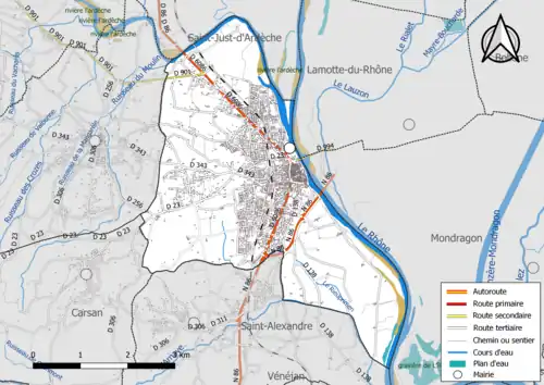 Les communes limitrophes sont Carsan, Lamotte-du-Rhône, Mondragon, Saint-Alexandre, Saint-Just-d'Ardèche et Saint-Paulet-de-Caisson.