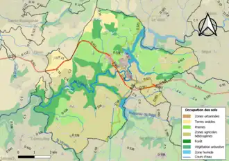 L'occupation des sols de la commune, telle qu'elle ressort de la base de données européenne d’occupation biophysique des sols Corine Land Cover (CLC), est marquée par l'importance des territoires agricoles (75,9 % en 2018), une proportion sensiblement équivalente à celle de 1990 (76,6 %). La répartition détaillée en 2018 est la suivante : zones agricoles hétérogènes (40,6 %), prairies (28,5 %), forêts (18,9 %), terres arables (6,8 %), eaux continentales (2,8 %), zones urbanisées (2,4 %)[28].