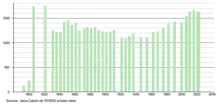 - ↑ Fiches Insee - Populations de référence de la commune pour les années 2006, 2007, 2008, 2009, 2010, 2011, 2012, 2013, 2014, 2015, 2016, 2017, 2018, 2019, 2020, 2021 et 2022.
