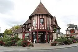 ![]() ![]() ![]() ![]() ![]() ![]() ![]() ![]() ![]() De haut en bas et de gauche à droite : l'Hôtel-de-Ville, l'église Saint-Michel ; le lac ; la Touques ; le monument aux morts ; maison à pan de bois ; siège de la Vicomté d'Auge ; l'office du tourisme ; ancien couvent des Dominicains. |