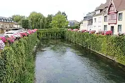 Établie à la confluence de trois rivières (la Touques, la Calonne et l'Yvie), elle tient son nom d'un pont que l'un des premiers évêques de Lisieux avait fait bâtir[30] et dont il percevait les revenus.