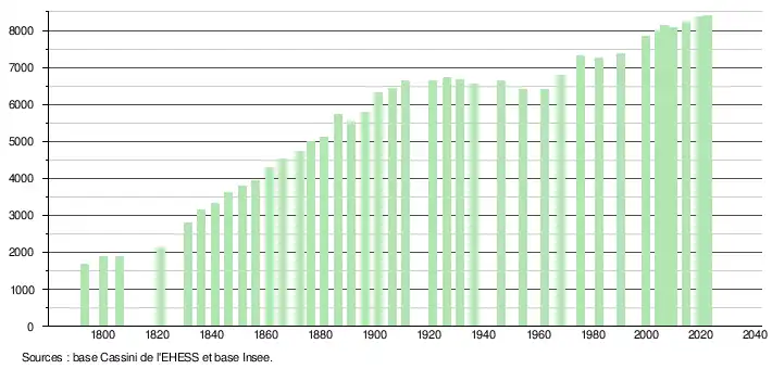 - ↑ Fiches Insee - Populations de référence de la commune pour les années 2006, 2007, 2008, 2009, 2010, 2011, 2012, 2013, 2014, 2015, 2016, 2017, 2018, 2019, 2020, 2021 et 2022.