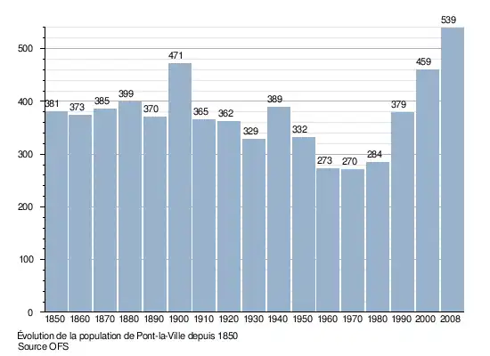 Le graphique suivant résume l'évolution de la population de Pont-la-Ville entre 1850 et 2008[5] :