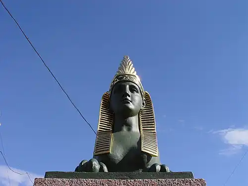 L'ancien pont suspendu à une travée, construit en 1825-1826 par les deux ingénieurs civils Wilhelm von Traitteur et Christianowicz, est un exemple de la vague d'égyptomanie du début du XIXe siècle. Le quai aux sphinx de Saint-Pértersbourg sera quelques années plus tard un autre exemple de cette vague, mais avec d'authentiques statues égyptiennes provenant de la tombe du pharaon Amenhotep III.