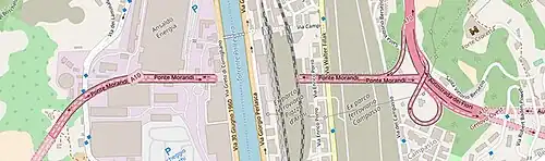L'ouvrage d'art est constitué d'un viaduc principal supportant l'autoroute A10 et d'un échangeur autoroutier entre l'A10 et l'A7 qui relie Milan à Gênes. Il présente une longueur totale de 1 102,5 m[1]. Le nom officiel italien de l'ouvrage principal est viadotto Polcevera[2],[3],[4], mais il est communément appelé « pont Morandi »[3],[4].