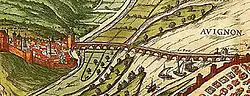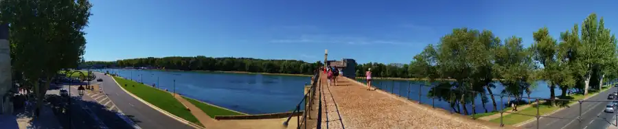 Le pont Saint-Bénézet, couramment appelé pont d'Avignon, est un vestige de pont composé de quatre arches résiduelles connectées à la rive gauche du Rhône.