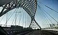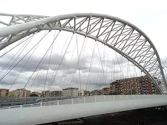 L'ouvrage dessine une flèche de 42 mètres au-dessus de la ligne de chemin de fer, et enrichit le paysage du secteur, assez industriel, tant du point de vue de l'architecture que de la technologie. Les deux voies de circulation du pont, distinctes et divergentes, permettent aussi la possibilité de circuler pour les piétons et les transports publics, et comprennent une piste cyclable.