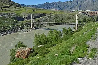 - 1 2 3 4 5 6 7 8 (ru) Ivegueni Gavrilov, « Подвесной мост через р. Катунь у с. Иня » [« Pont sur la rivière Katoun près du village d'Inia. »], vtourisme, (lire en ligne)