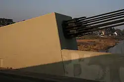Elle est constituée par rive de quatre câbles porteurs paraboliques de 2 342 mm² disposés en faisceaux continus sur toute la longueur de l'ouvrage et de trois câbles de haubanage de 1 980 mm² interrompus au droit de chaque portique mais continus au droit des obélisques sur culées.