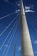 Les deux pylônes sont en béton jusqu'au niveau de 175 m et en matériau composite constitué d'une bague intérieure en béton avec une enveloppe en acier inoxydable de 20 à 25 mm d'épaisseur pour les 120 m supérieurs[2]. Le premier concept comportait une structure en acier jusqu’au niveau de 175 m, mais Arup a constaté que cette configuration serait trop sensible et pourrait conduire à des vibrations incompatibles avec les haubans. Le remplacement de la section en acier par une section composite plus lourde résolut ce problème. Pour des raisons de durabilité et d'esthétique, d'autres études conclurent que l’enveloppe de la tour devait être fabriquée à partir d'un acier inoxydable duplex avec une surface finie par grenaillage. Le tablier est en acier dans la travée principale et en béton dans les travées latérales.