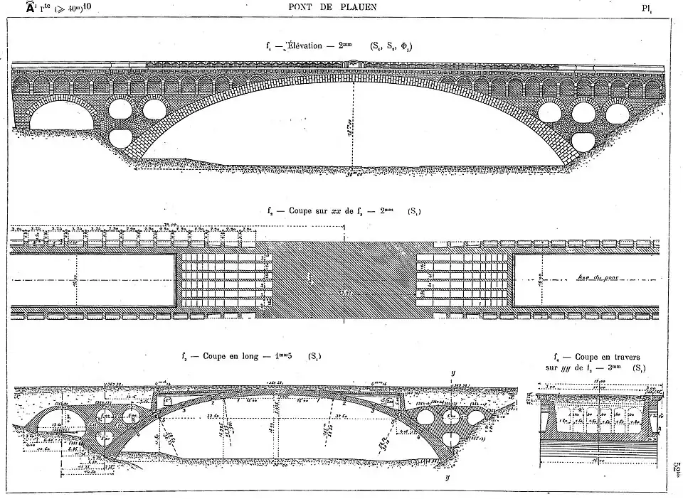 Avec une portée principale de 90 mètres, cet ouvrage est le plus grand pont voûté en maçonnerie construit en occident. L’arrivée de nouvelles techniques de construction utilisant l’acier, comme les ponts suspendus ou les ponts en béton armé, sonna brutalement la fin de la construction des ponts en maçonnerie dans le monde occidental. Construit en 1905, son record tiendra jusqu’en 1965, où le pont de Hongdu, dans la province de Guangxi[1] franchit alors le seuil des 100 mètres.