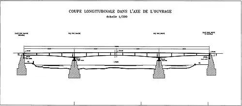 Le tablier n'a pas été construit en béton précontraint, cependant il a été nécessaire en 1976 de réaliser une précontrainte sur chaque entretoise pour le passage d'un convoi exceptionnel.