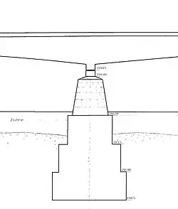 Les massifs ont une hauteur de 7,5 m dont 5,5 m environ et sont enterrés dans le sol de l'Isère.