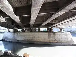 Le tablier central est lui formé de cinq poutres en béton armé reliées par le hourdis et des entretoises séparées de 7 m environ. Il est large de 11,55 m.
