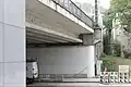 La construction de ce pont-rail qui supporte les voies de la ligne 161 à la sortie du tunnel Berlaymont (Station Schuman) pour franchir la Chaussée d’Etterbeek nécessitait une hauteur de tablier minimum. Pour la portée envisagée (33m), ceci dicte l’utilisation de poutres préfléchies[1]. Pont-rail composé de 3 tabliers indépendants supportant chacun une voie. Chaque tablier est composé de 3 poutres préfléchies. Chaque poutre préfléchie est constituée d’un profilé HEM 1000, sérieusement renforcé par des plats soudés sur les semelles[2].
