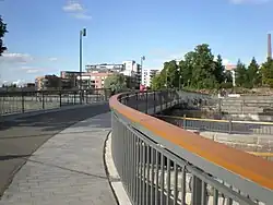 Du côté de Finlayson, le pont commence dans le parc Wilhelm von Nottbeck. Le pont traverse d’abord l’ancien canal du jardin de Finlayson, puis les deux portes d'écluse de la centrale hydroélectrique de Finlayson, qui s’ouvrent sous le pont. Puis trois vannes anti-inondation se trouvant au milieu du pont, permettent de réguler la surface du lac Näsijärvi afin qu'elle ne puisse dépasser la ligne de crue.