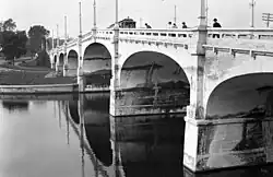 Un pont de bois a d'abord été construit à cet endroit en 1866. Quelques années plus tard, un pont tournant en acier a été construit afin de faciliter le passage des bateaux.