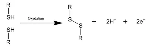 En biochimie, la réduction d'un pont disulfure peut se faire en présence de réducteurs doux, tels le 2-mercaptoéthanol ou le dithiothréitol (DTT ou réactif de Cleland).