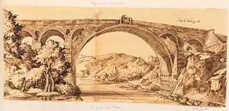« L'on passe le Tec à Céret sur un pont d'une seule arche de pierre, qui est la plus large, la plus haute, & la plus hardie qu'il y ait peut-être en France. Quand on est au milieu, il est difficile de regarder en bas sans frémir. Il est pavé, & les voitures passent pardessus. On dit dans le païs que c'est le Diable qui l'a fait. On trouve au bout une Chapelle, où en tems de guerre il y a toûjours un corps-de-garde. »