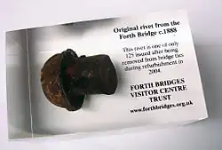 - En 1996, lors des travaux de réfection du pont, mille rivets d’origine furent vendus comme presse-papier au prix de 30 £ pièce[10]. Depuis 2006, d'autres rivets sont en vente sur le site du Forth Bridges Visitors Centre Trust, association pour la promotion de ce monument[27].