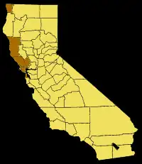 Carte de Californie présentant les comtés qui ont participé au financement du pont du Golden Gate.
