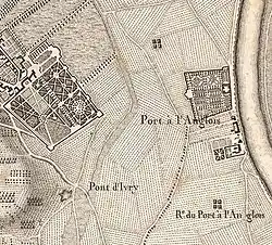 La carte des Chasses du Roi, réalisée par Jean-Baptiste Berthier de 1764 à 1773 et de 1801 à 1807, figure une remise du port à l'Anglois et un lieu-dit éponyme, au bord du fleuve.