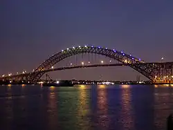 ![]() | 7 | Bayonne Bridge | routier | 504 | 1761 | Acier, tablier intermédiaire | Kill Van Kull | 1931 | Kill Van Kull (New Jersey, New York) 40° 38′ 31″ N, 74° 08′ 31″ O | [S 4] | ||