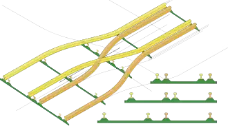 Néanmoins un système d'enchevêtrement des voies (en), quatre lignes de rails traversent le pont, permet le passage des trains. Ce système économique a permis d'éviter d'avoir à poser et à faire fonctionner des aiguilles de part et d'autre de l'ouvrage[8].