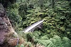 - Bridge to Nowhere un pont routier en béton de 40 m construit en 1936 en Nouvelle-Zélande sur la gorge Maungaparua pour permettre l'aménagement d'une région isolée en pleine forêt. Cet aménagement étant un échec, la région retourna à l'état sauvage, c'est maintenant le parc national de Whanganui.