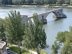 - Le Pont Saint-Bénézet en Avignon sur le Rhône. Plusieurs arches ont été emportées par les crues du fleuve.