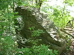 Aujourd'hui seuls demeurent en place: l'amorce de l'arche, le mur de soutien de l'adossement de l'est et une partie de la substructure de la route d'accès constituée par une arcade aveugle[1]. Les parties supérieures, une muraille de pierres sèches et leur parement présente une alternance de dalles de pierres et d'éclats de pierres principalement verts. La voute des arcs et les bords des adossements et des contreforts sont en pierre locale[1].