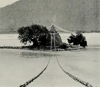 C'est justement l'essor européen de celle-ci qui exporte le pont suspendu sur le continent. En France, la technologie est connue au travers des exploits britanniques relatés dans les journaux. Une mission d'étude des Ponts et Chaussées est menée en 1821, sans aboutir. Le territoire contient un des fleuves les plus difficilement franchissables à l'époque : le Rhône. Les ponts sont très peu nombreux : trois, dont un rompu (le pont d'Avignon) entre Lyon et l'estuaire. En effet, le fleuve est large, très puissant, et ne connaît pas de baisse notable de son flux puisque subissant la fonte des neiges. Sans saison « sèche », il est donc impossible d'édifier des piles selon la méthode éprouvée. La compagnie Jules Seguin (Annonay, Ardèche), dirigée par Jules et Marc Seguin, propose donc un projet innovant en 1822 : le pont suspendu de Tournon[7]. L'entreprise comprend très vite qu'un pont suspendu classique est impossible en France du fait de la qualité médiocre des chaînes. On tente alors de les remplacer par des faisceaux de fils de fer. C'est la naissance du câble. Après plusieurs essais et un refus des Ponts et Chaussées, le projet est finalement accepté.