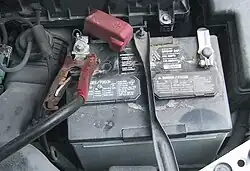 Une connexion temporaire est établie à la batterie d'un autre véhicule ou à une autre source d'alimentation externe. L'alimentation externe en électricité recharge la batterie du véhicule en panne et fournit une partie de la puissance nécessaire pour démarrer le moteur. Une fois le véhicule démarré, son système de charge normal prend le relai, de sorte que la source auxiliaire peut être supprimée. Si le système de charge du véhicule est fonctionnel, le fonctionnement normal du véhicule rétablira la charge de la batterie[1].
