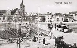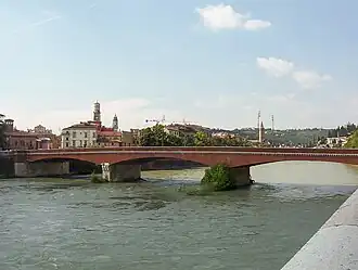 - ↑ Paride da Cerea parle d'un effondrement en 1153, dû à la même inondation qui emporte la dernière pile du ponte Postumio, et d'un autre le 3 octobre 1239, confirmé par des inscriptions conservées à Santo Stefano et à San Zeno.