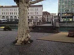 À partir de 1871, les anciens ponts de bois, soutenus par des pieux et goudronnés sur leurs tabliers, sont remplacés par quatre ponts identiques en métal dont la construction s'étendra sur quatre hivers successifs. Finalement, en 1874, les deux ponts de la rive gauche sont réunis par une plateforme de 21,65 mètres de large, créant un espace public de 600 m2. Les deux ponts de la rive droite — le pont de Coutance et le pont des Frises — subissent la même opération en 1887. Ces ouvrages seront à nouveau remplacés par de nouveaux ponts entre 1894 et 1896, composé d’un tablier de béton armé reposant sur des poutres métalliques à treillis multiples (avec plus de 16 000 rivets)[4].